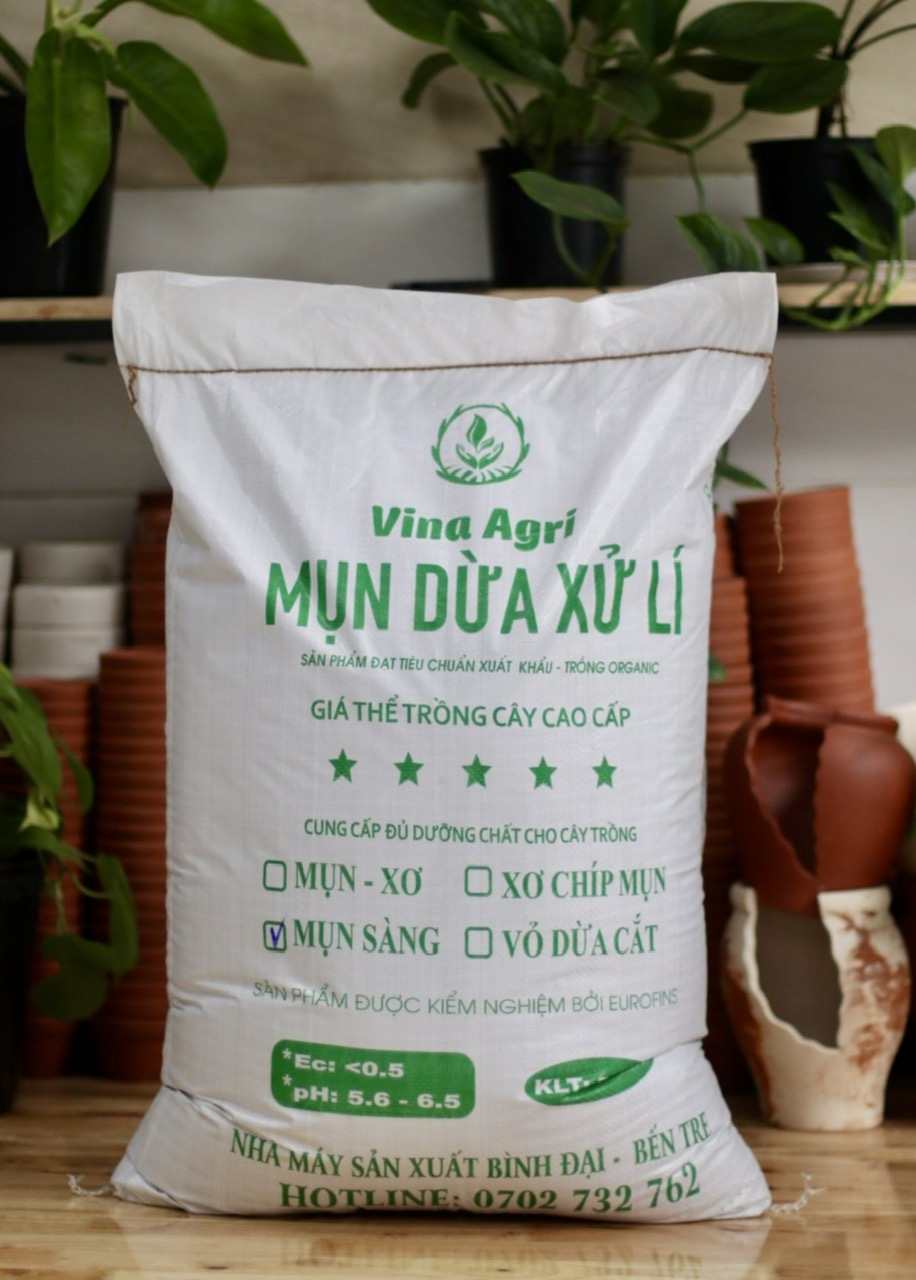 - Mụn xơ dừa sạch, giữ ẩm tốt và khá trơ về mặt hóa học nên giúp cây con phát triển đồng đều và dễ chăm sóc.