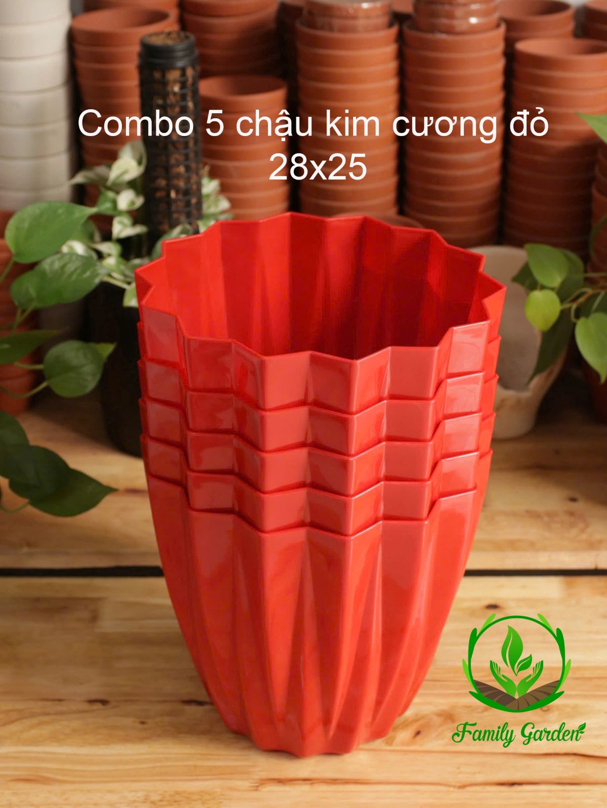 Chậu nhựa kim cương Thakico - Đỏ - Size 28x25cm | Độc quyền Family Garden