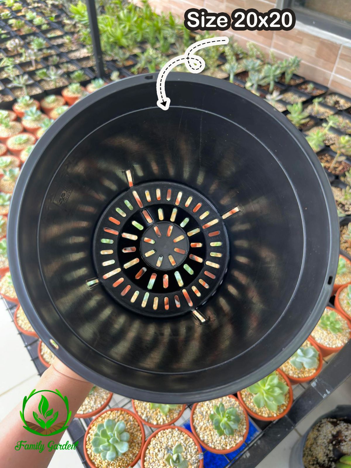 - Vành được thiết kế nhô cao cho phép người trồng cầm và xếp các chậu một cách dễ dàng. Thiết kế phần đáy chậu đảm bảo thoát nước thích hợp, đồng thời cho phép cây thở tự do.