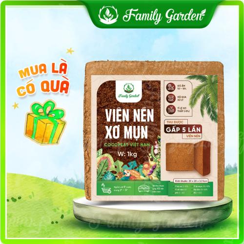 - Nguyên liệu chính là mụn dừa từ vỏ dừa già khô. Sản phẩm viên nén xơ dừa nhà Family Garden được sản xuất từ các mụn dừa đã qua xử lý khiến các chất chát (lignin và tanin) gây xót cây bị loại bỏ hoàn toàn, được nén chặt và bọc bởi lớp màng co.
